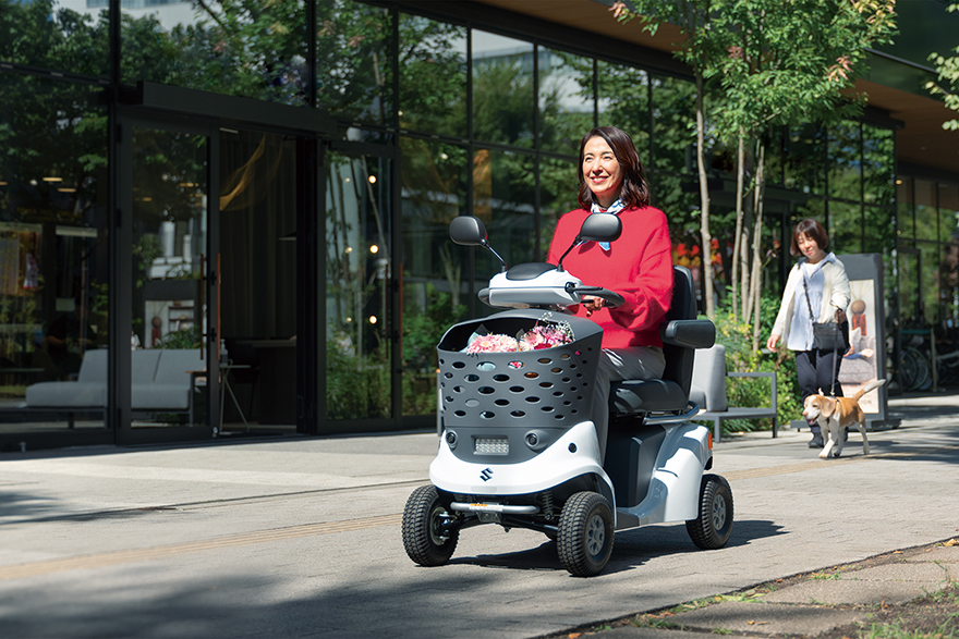 電動で動く、運転免許不要の「スズキセニアカー」の展示PR