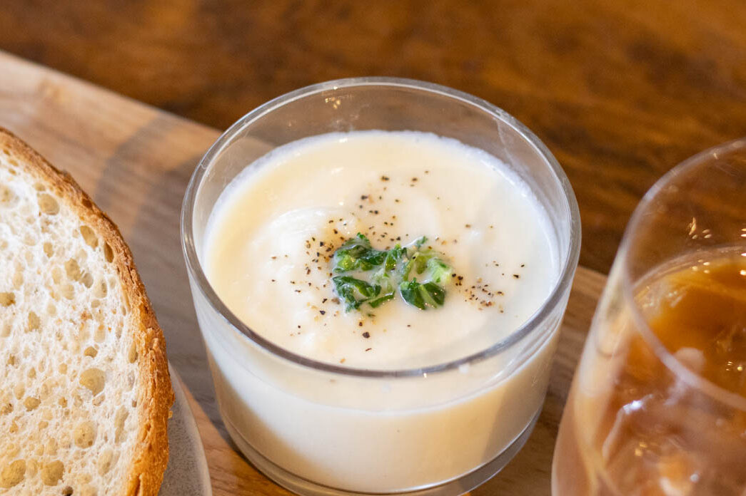 取材時の日替わりスープは「大根のポタージュ」。とろりとした口当たりで、体の内側から温まるような滋味深さが広がります。