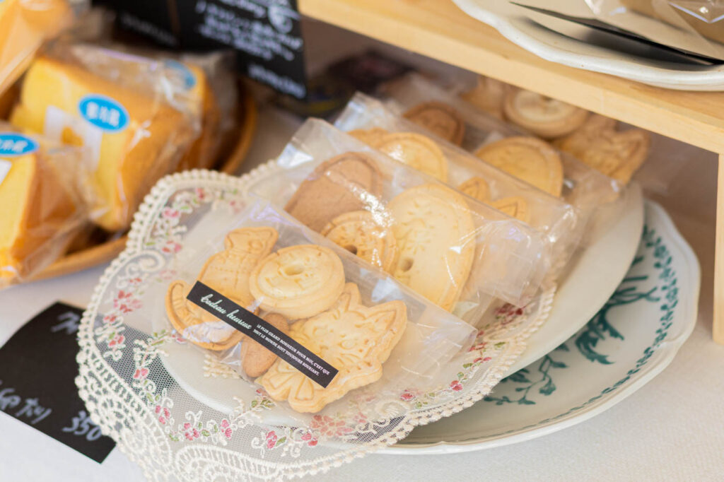 ベーグル以外にも、米粉を使ったパンや、クッキー、シフォンケーキ、チーズケーキなどの焼き菓子もならびます。また、コーヒーや、自家製の甘酒を牛乳または豆乳で割った「アマザケドリンク」など、テイクアウトのドリンクも。
