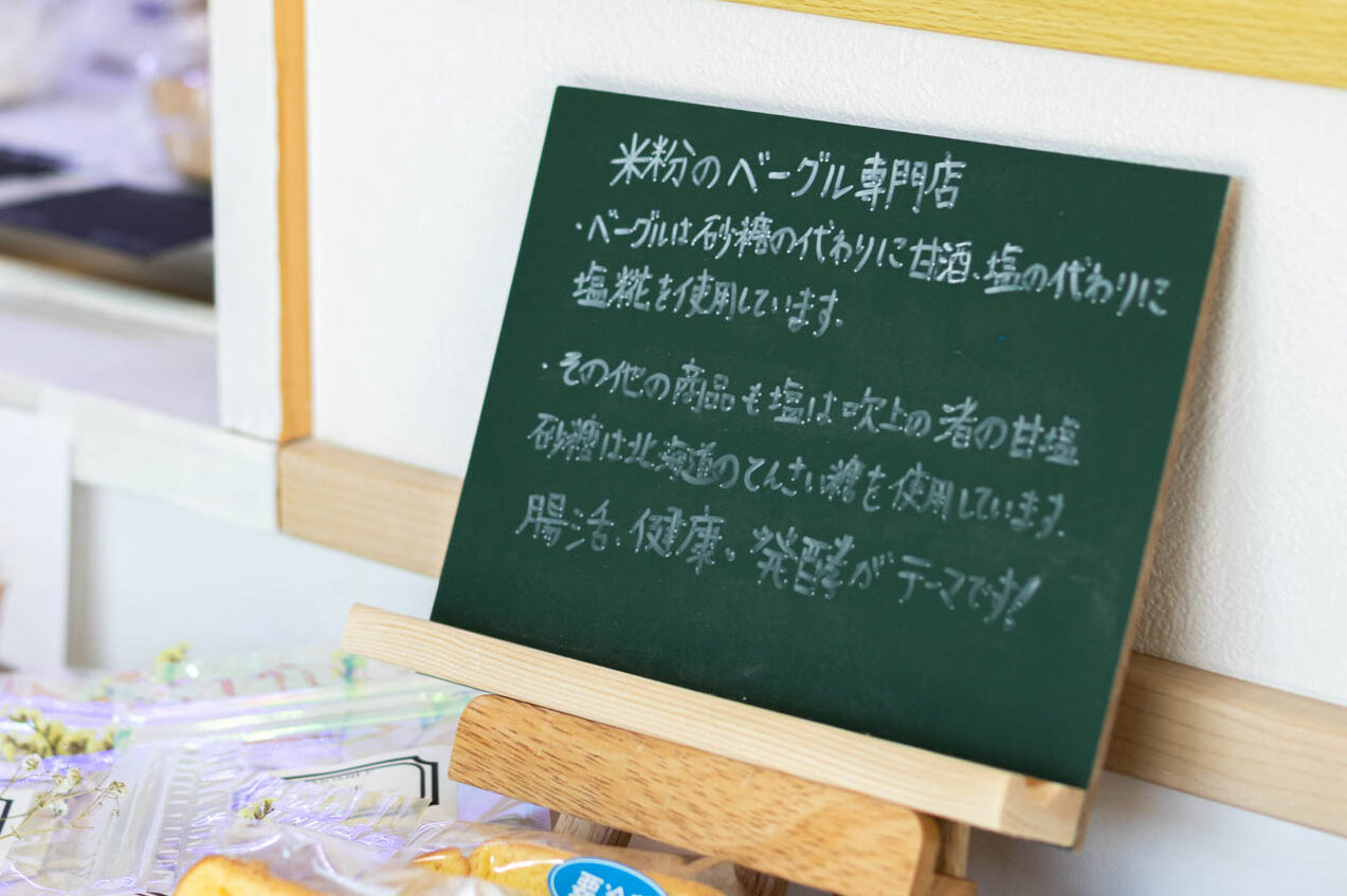 もともとは小麦粉と米粉のパンを販売していましたが、2026年1月に米粉ベーグルの専門店としてリニューアルしました。全商品グルテンフリーのため、小麦アレルギーをもつ家族がいても、みんなで同じものを楽しめると評判で、小麦を控えている人にも人気。米粉製品ならではの腹持ちの良さで、男性客の心もつかんでいます。