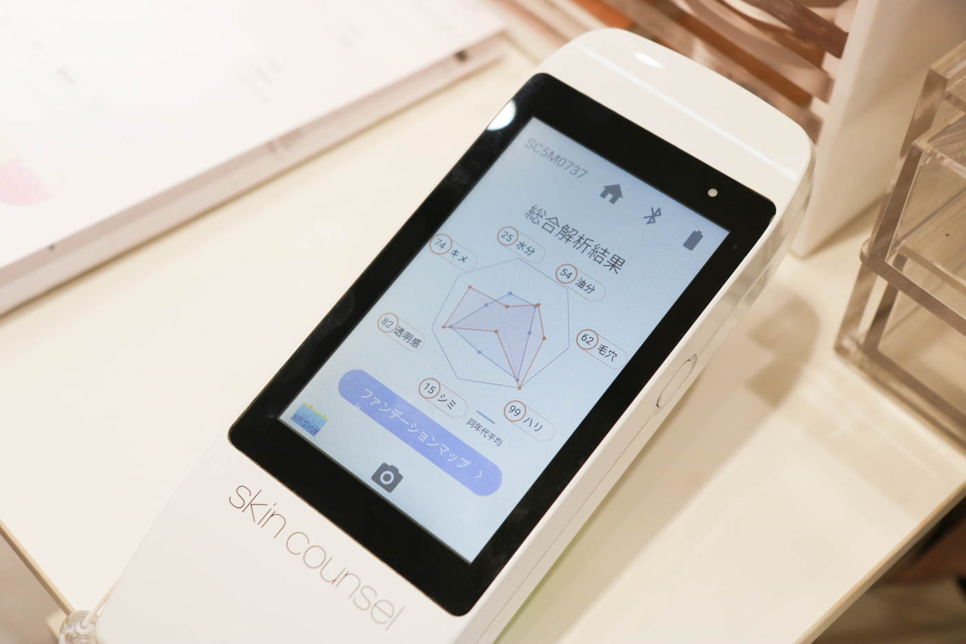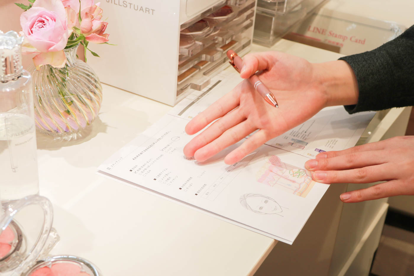 内容:肌診断、スキンケアカウンセリング、メイクレッスンの3ステップ