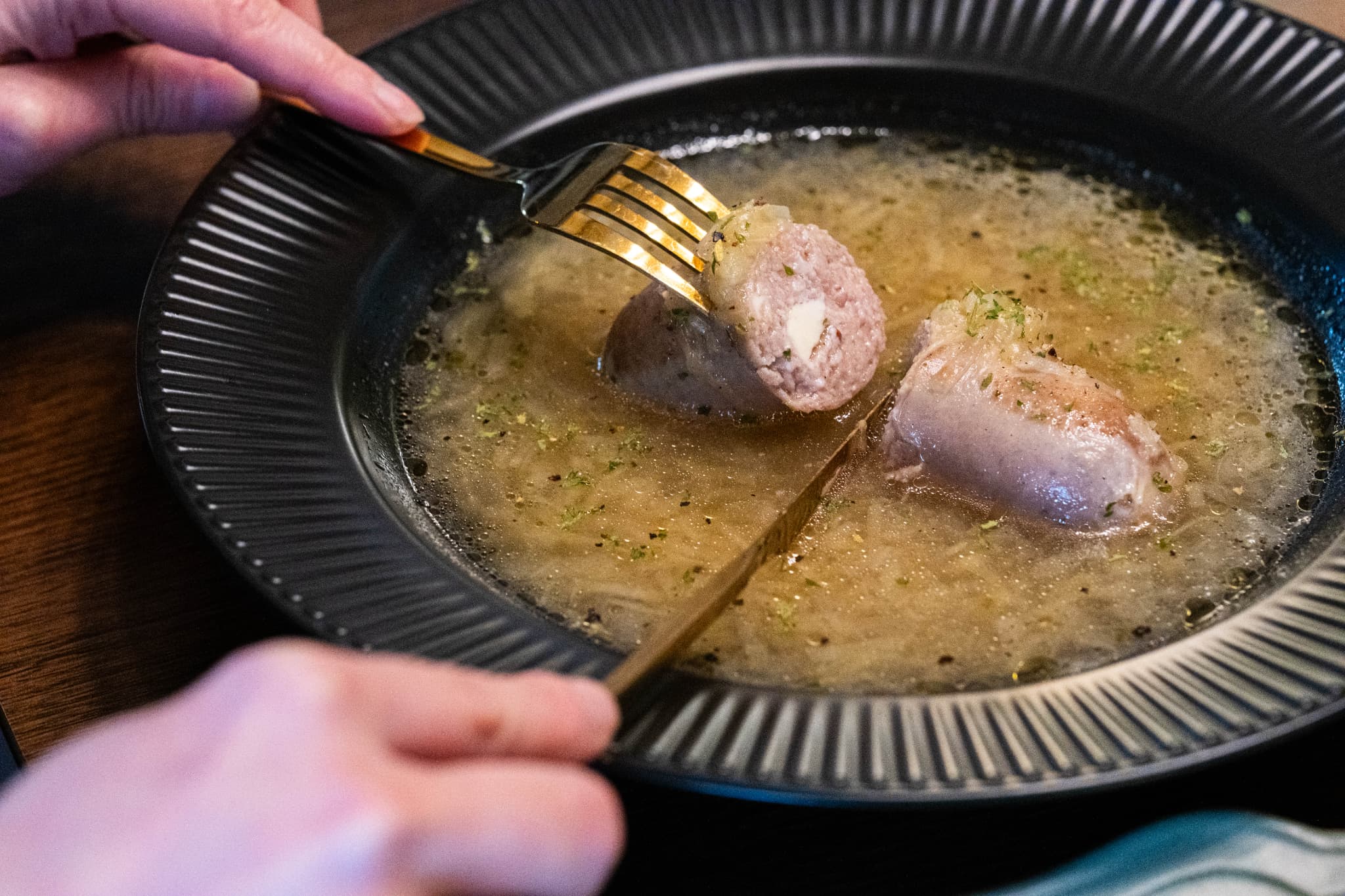 ▲このときのメインは「フランクソーセージのシュークルートスープ」