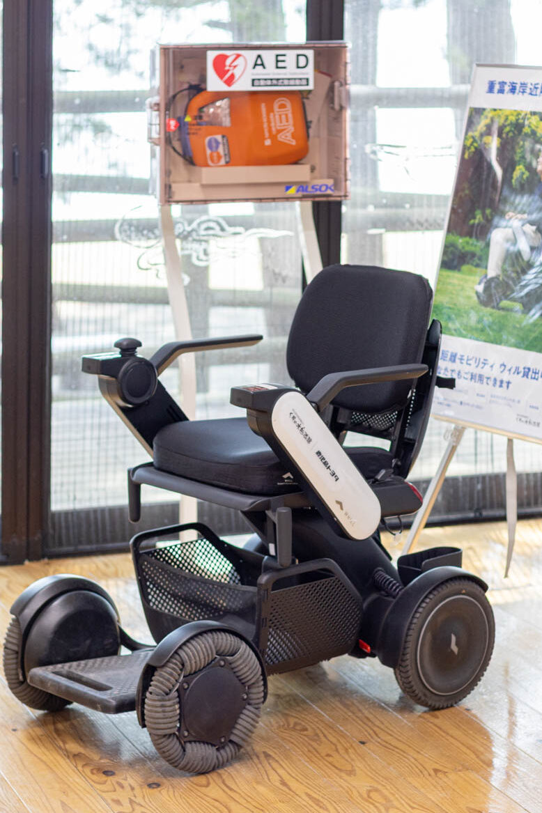 また、砂浜でも走れる、電動車いす型の近距離モビリティ「ウィル」も導入しています。普段車いすを利用している人はもちろん、砂浜を歩くのが不安な方も利用OK。