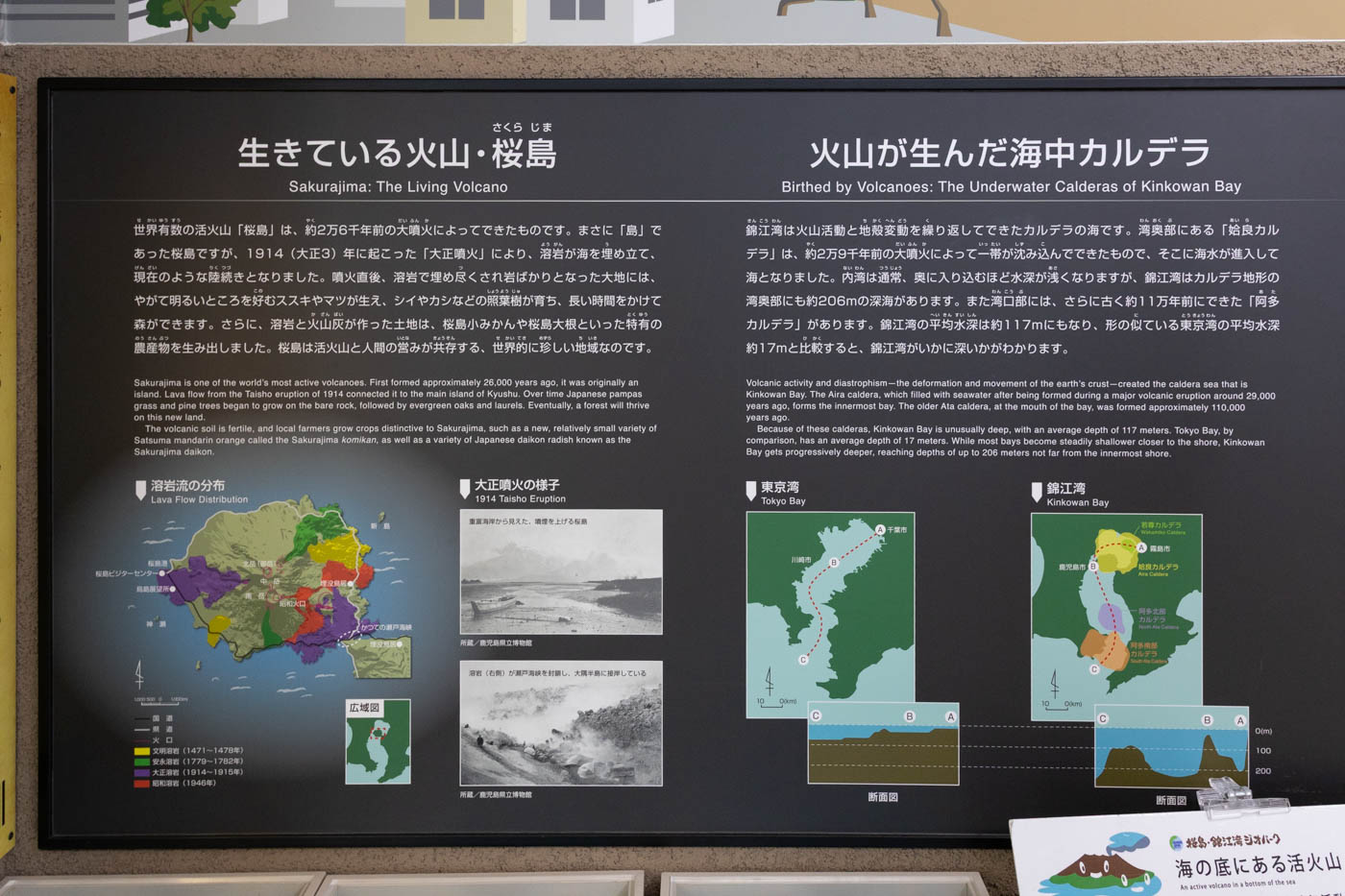 そのほか、錦江湾の地形や成り立ちについてのパネルや模型、周辺の絶景スポットを紹介する「錦江湾ビューポイント」、季節によって変わる企画展などの展示もあります。