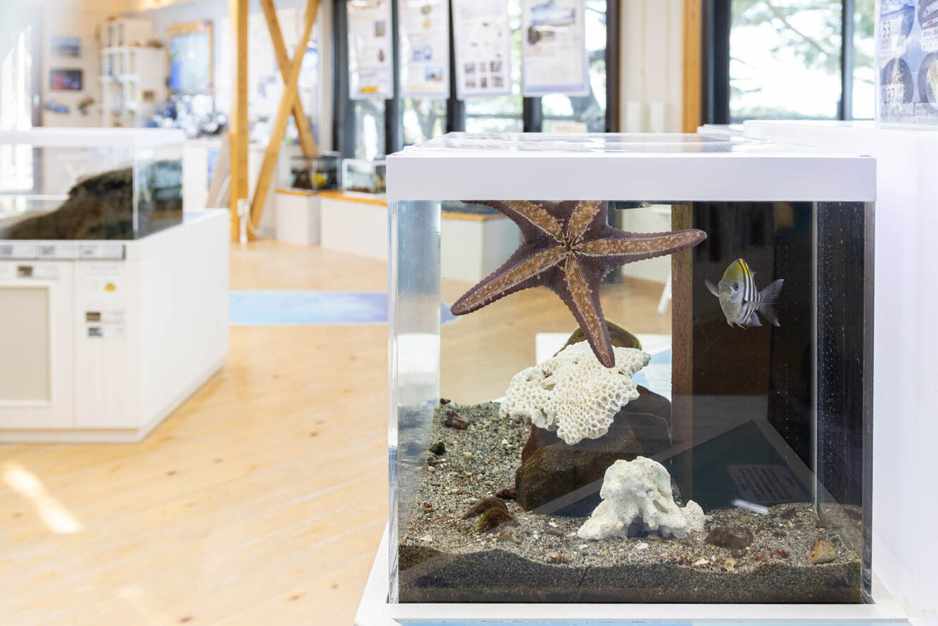 館内にはたくさんの水槽が並び、全体でおよそ50種類(※)の生き物が飼育されています。どの水槽も、岩や海藻のレイアウトや水温、水槽内の明るさなど、それぞれの生き物が暮らしていた環境を再現。自然に近い状態の生き物たちを観察できます。