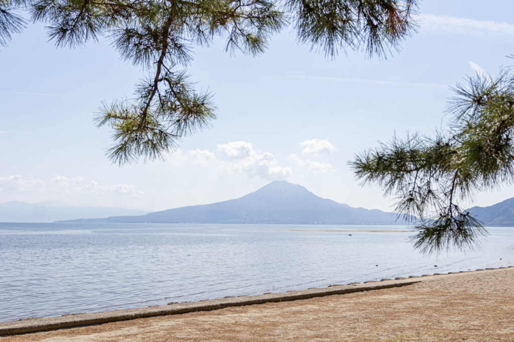錦江湾と「重富海岸自然ふれあい館 なぎさミュージアム」
