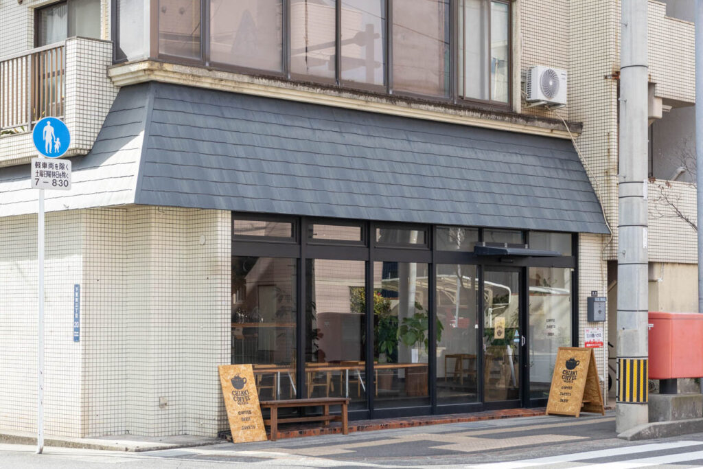 JR伊集院駅南口から徒歩3分ほど。伊集院日吉線に面した、茶色とグレーがかった緑の建物が「珈琲院よしむら」。1975年の開業以来、50年以上にわたって親しまれてきた喫茶店です。