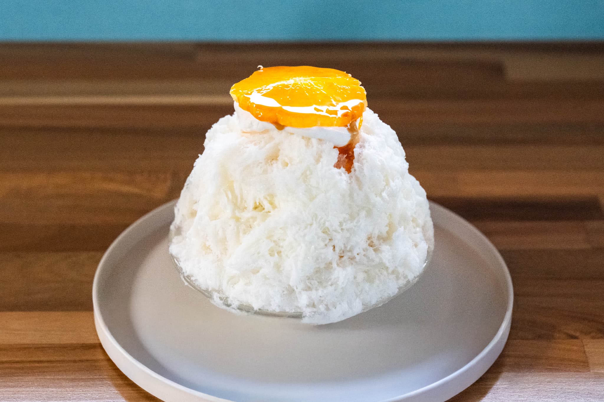 かき氷には、鹿児島市にある有名氷店の氷を使用。温度や湿度によって削り方を調整し、ふわふわ食感と口溶けにこだわっています。