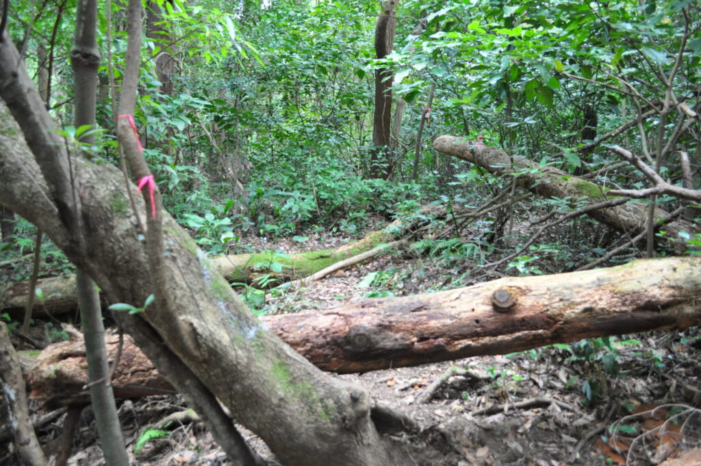 そうだ、山歩きの本やスマホアプリでイメージトレーニングしてきたのだから…と、とにかく歩いてみよう。そう言い聞かせながらも、このままだと昼前に頂上に着くのは無理だと焦りがありました。10分も歩かないうちに脚が突っ張っているのを実感。倒木をまたぐのも一苦労。そうして初めて、屈伸運動も、足首クリクリもせずに歩き始めたことに気が付きました。少し平らな場所で準備運動し、再出発した次第。