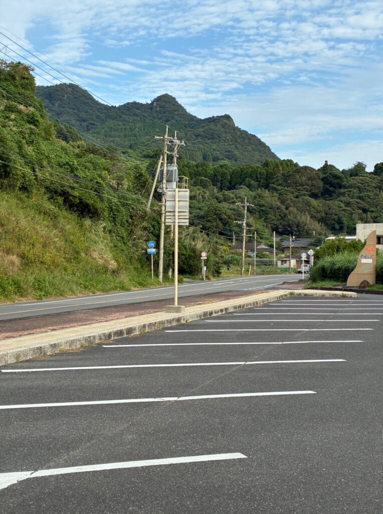 今回、矢筈岳登山の近くで駐車スペースとして紹介するのは、物袋(もって)農村公園の前にある空きスペースと海沿いの空きスペースです。なるべく乗り合わせて行くのがお勧めです。少し距離はありますが、西郷ドン岩を見上げるところで紹介した「瀬平公園東側駐車場」もあります。