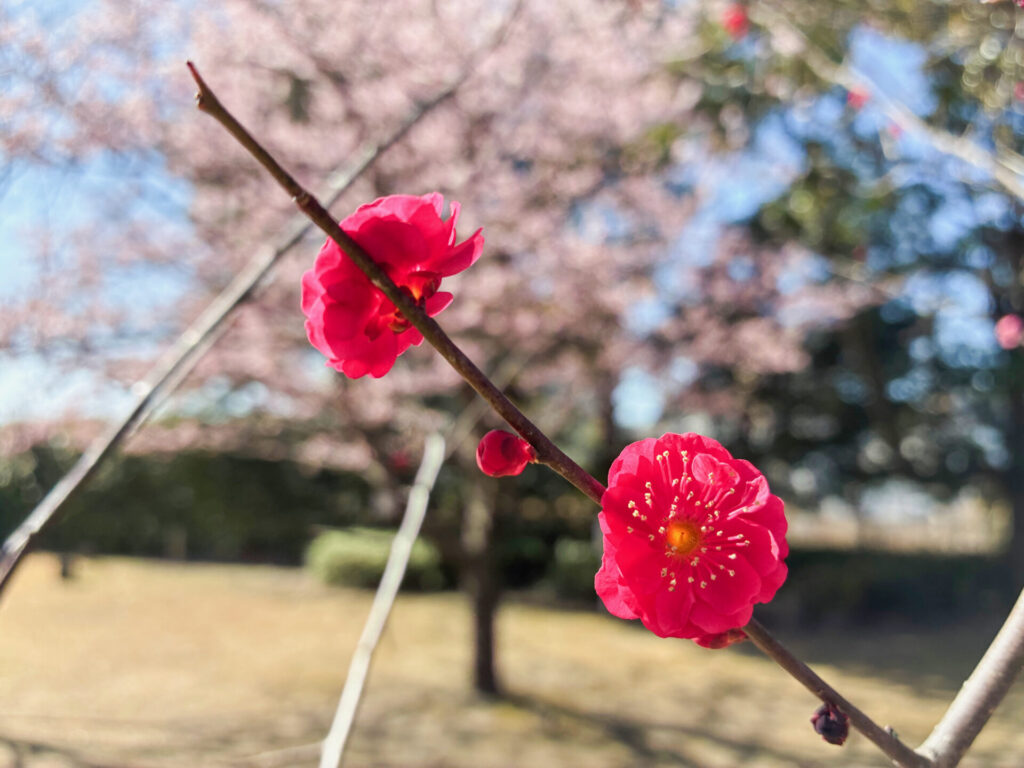 梅の季節はメジロのさえずりとともに始まり、ウグイスが「ホー、ホケキョ」と鳴き出す頃には静かに姿を隠していくようです。