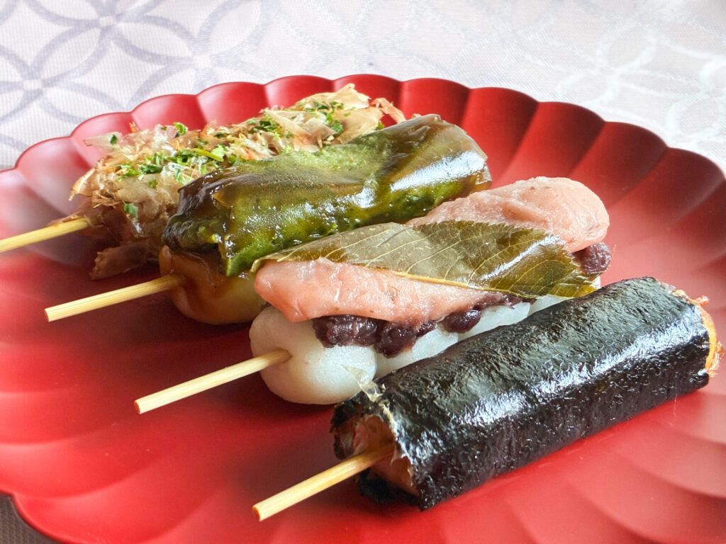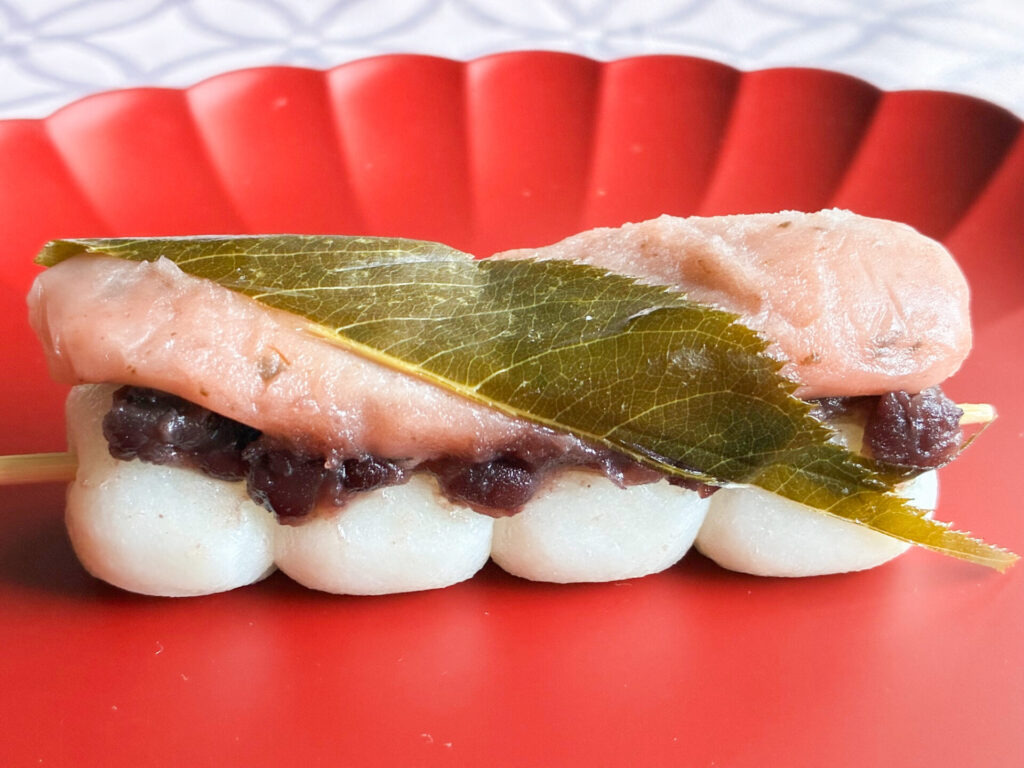 団子、こし餡、桜餡、そして塩漬けの桜葉。甘味と塩味、おいしさの四重奏がたまらない1本です。