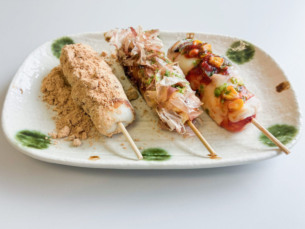 つまみにもなる「たこやき団子」「ピザ団子」などをキープしておくのもお勧めですよ。団子屋さんで、一緒に名物のガネ天、焼きそばなども求めてみては。