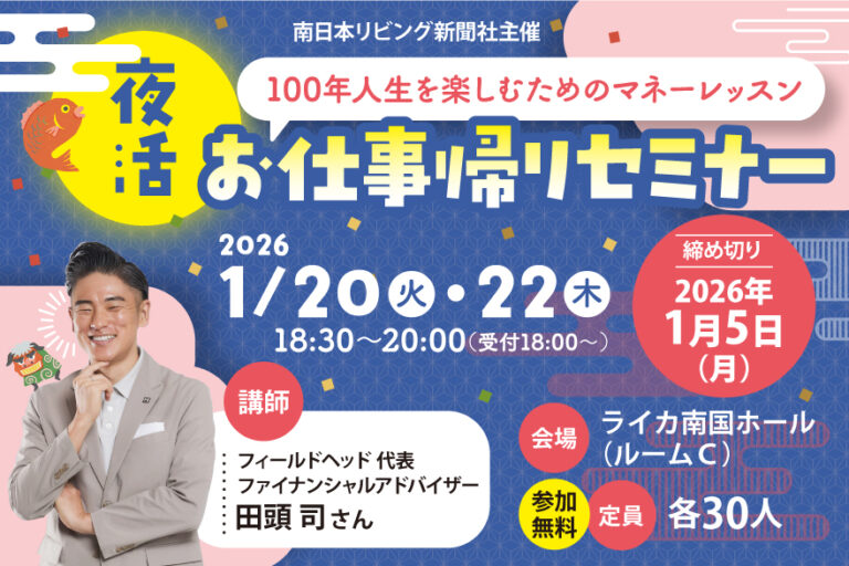 「ゼロから学ぶ〝たまる暮らしの整え方〟セミナー」12月3・6日に鹿児島サンロイヤルホテルで開催