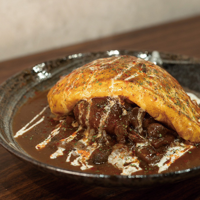 ふわとろのオムレツとハンバーグの「オムバーグ」の他、スパイスカレーも絶品。