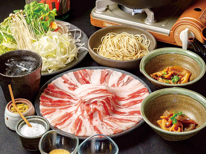 スープが8種類から選べる「黒豚しゃぶ鍋」や郷土料理、焼酎が楽しめます。