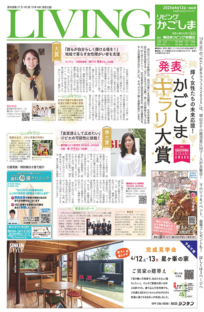 第1回かごしまキラリ大賞の受賞者の活動については、リビングかごしまの2025年4月12日号フロント特集(1・2面)で掲載されました。
